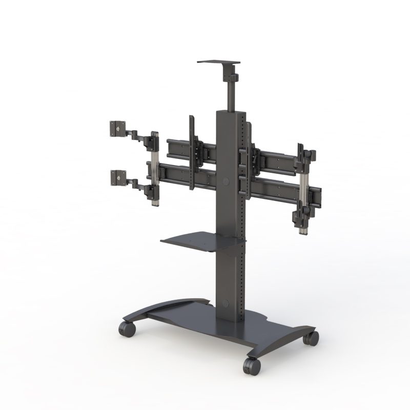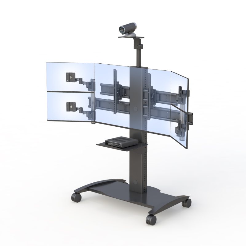 Heavy-duty and effortlessly mobile, this computer monitor rolling cart can accommodate up to 5-monitor mounts and a wide base for optimum stability. Heavy-duty and effortlessly mobile, this sturdy mobile monitor stand can hold a broad configuration of LED monitors.