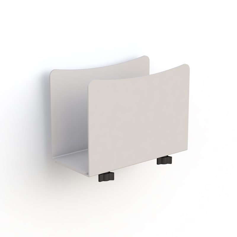 Introducing the Wall Mounted CPU Holder from Ergoville, a versatile and space-saving solution designed to securely mount computer CPUs to walls or computer tracks. With its adjustable dimensions, this CPU holder accommodates a variety of CPU sizes, standing at 10 inches long x 7 1/8 inches high, with a width that can be adjusted from 4 1/2 inches to 8 inches.