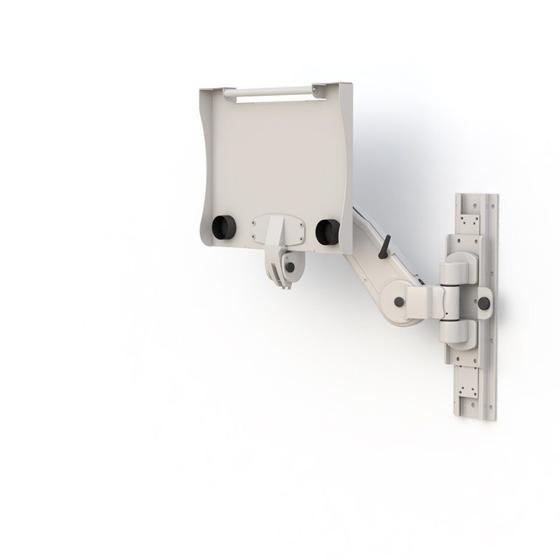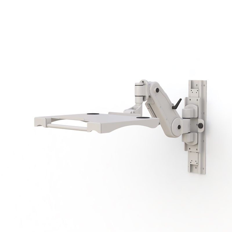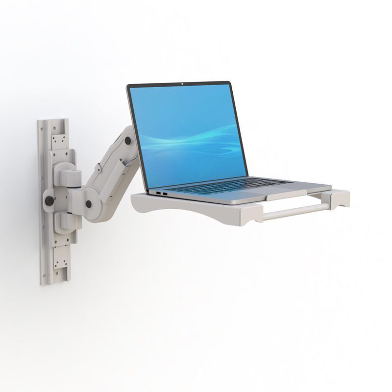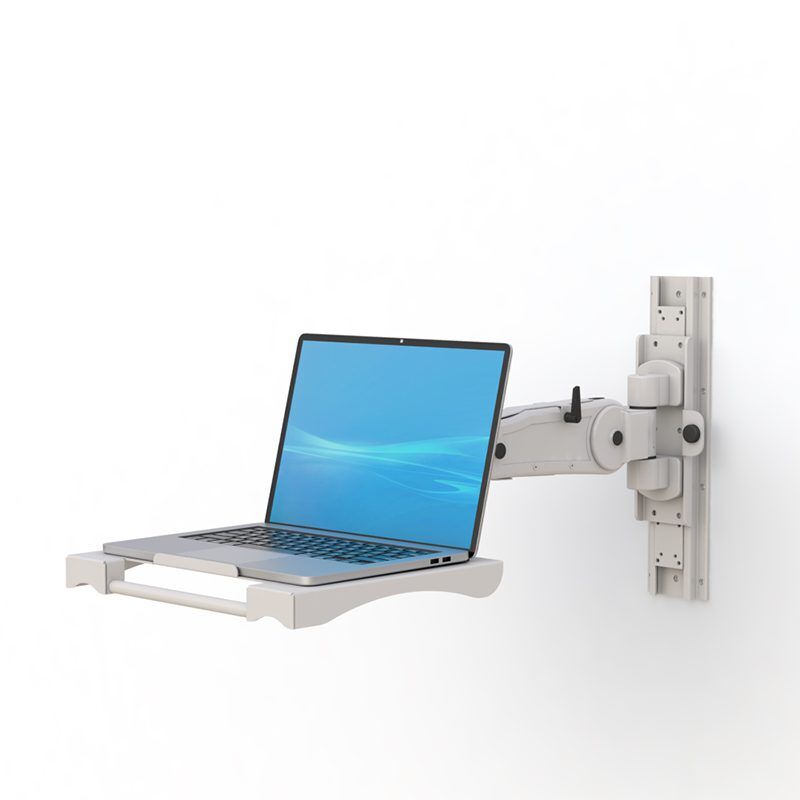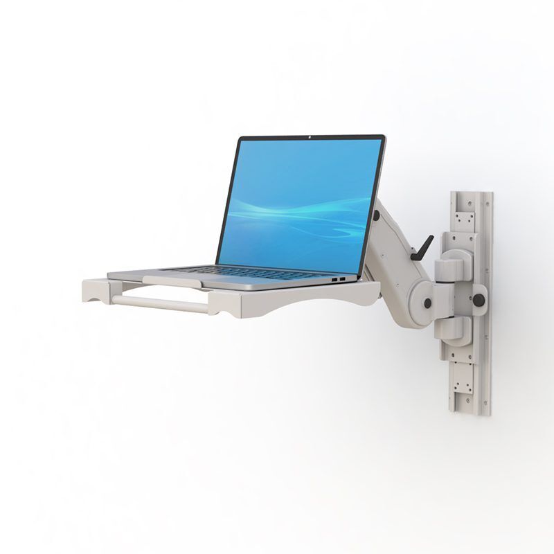 Equipped with a standard 18-inch track, this laptop station can be securely mounted to the wall, offering stability and durability for long-term use. Wire managers are included to help organize and conceal cables, while a mouse holder provides convenient storage for peripherals. Various track sizes are available to suit different workspace configurations and requirements.